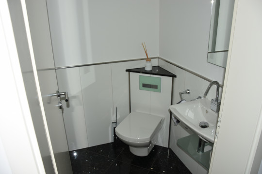 Herzstück ist der großzügige und bis in den First offene Wohnbereich mit Kamin und offener Küche. Er bietet Raum zum Durchatmen und zugleich ein wohliges Zuhause-Gefühl. Das exklusive Bad ist ausgestattet mit Dusche, Badewanne und Fenster, ein separates Gäste-WC ist vorhanden.