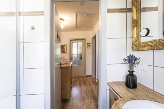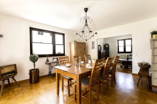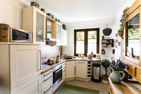 Das Grundstück ist traumschön, eingerahmt und behütet von alten Bäumen und kaum einsehbar. Es bietet heimelige Winkel, schöne Perspektiven und viel Platz – die stete Einladung zum Draußenleben. Im Rahmen des § 34 BBauG kann das bestehende Haus erweitert werden.